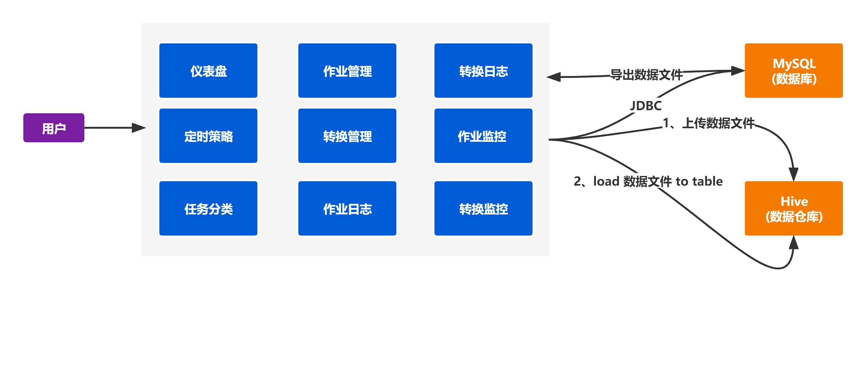 提供B/S模式的web界面,使有瀏覽器的地方即可管理、監(jiān)控?cái)?shù)據(jù)集成任務(wù)的需求成為并提供了統(tǒng)一管理ETL作業(yè)任務(wù)、轉(zhuǎn)換的入口